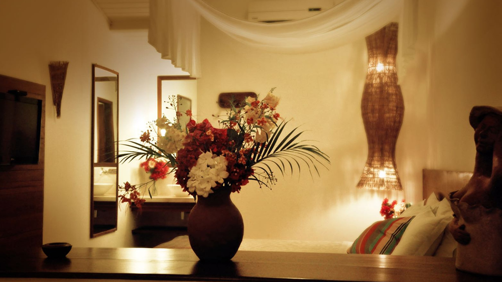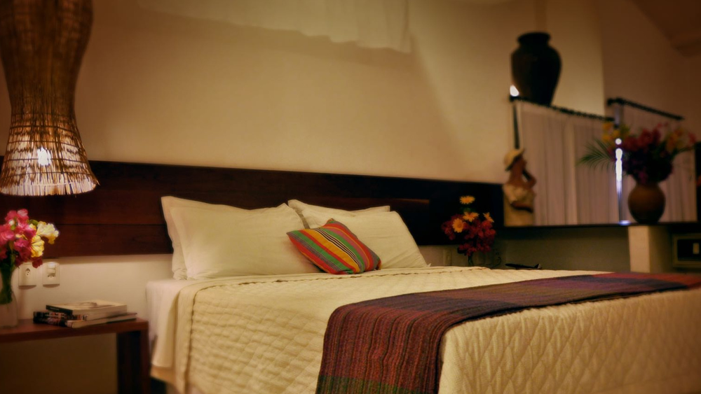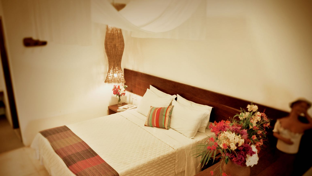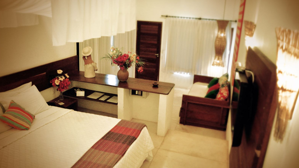São 20 chalés que recebem, com conforto, até quatro pessoas, todos com decoração em cores agradáveis combinadas com obras de arte e peças do artesanato local.