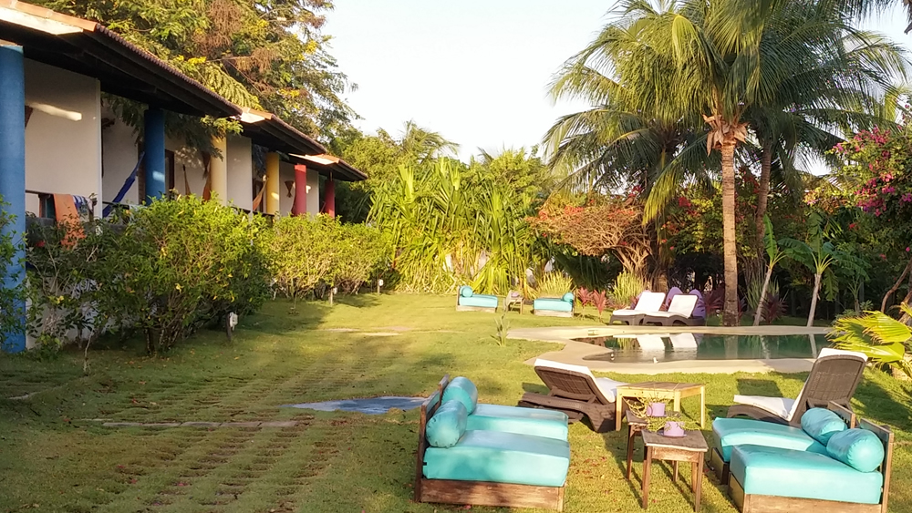 As cores da pousada são intensas e tipicamente nordestinas -vermelho, azul, verde e amarelo. Um ambiente bem colorido, único e especial.